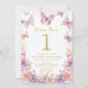 Invitation Elegant Watercolor One 1st Birthday Butterfly Gir