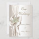 Invitation Elegant Wedding Damask Pearl Cream White Bow 2