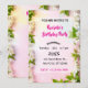 Celebrate your special day with this elegant white cherry blossom invitation. Featuring delicate spring flowers and green leaves on a soft pastel pink background, this floral design is perfect for romantic birthday parties. Easily customise the text for a unique touch.