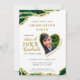 Créez une invitation unique de remise de diplômes photo pour la classe de 2025 diplômé conçu dans les couleurs blanc, vert émeraude et or décoré de style agate motif. Les modèles facilitent la personnalisation des invitations avec vos données et vos photos. Le nom et le nom de famille doivent être changés séparément pour avoir cette vue courbe élégante. Veuillez utiliser le modèle pour télécharger votre photo pour avoir la même image en forme de coeur du diplômé. Essayez quelques photos pour choisir celle qui convient le mieux à une image en forme de coeur.