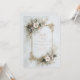 Radiate modern luxury with this breathtaking design that pairs the organic beauty of nature with sophisticated architectural elements. The background features a smooth, creamy white marble texture veined with subtle gold accents that catches the light, creating a pristine canvas for your event details. A delicate geometric gold frame structures the layout, adorned with an ethereal arrangement of white cosmos, dried baby’s breath, and champagne-colored metallic leaves. The corners are embellished with intricate gold filigree that adds a touch of royal elegance to the contemporary composition. This pristine aesthetic is perfectly suited for a winter wonderland wedding where snow-white and gold set the theme. You could also utilize this stunning artwork for a sophisticated Golden Anniversary celebration honoring fifty years of marriage, or a modern high-end bridal shower brunch. It is also an excellent choice for upscale salon price lists, jewelry boutique branding, or exclusive spa membership cards that require a polished and high-end look.