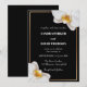 Set a tone of timeless romance for your special day with this sophisticated black and white wedding invitation. This design features a deep, solid black background that provides a dramatic and modern contrast to the delicate white orchid blossoms placed gracefully in the corners. A shimmering gold-look border frames the design, adding a luxurious and refined finish to the overall presentation.
