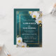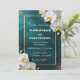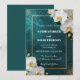 Set a tone of timeless romance and modern luxury for your special day with this stunning deep teal wedding invitation. The design features a rich, dark teal background enhanced with a shimmering gold glitter spray and elegant white orchid blossoms. A delicate metallic-look gold border frames the text, adding a touch of high-end refinement to your wedding announcement.