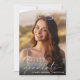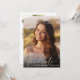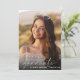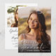 Élégante invitation de la fête de remise des diplômes avec la photo de la grade superposée avec "diplômé" dans un mince script blanc moderne et leur nom et année de classe dans la simple typographie blanche. À l'envers, ajoutez une photo supplémentaire et les détails de la grande fête.