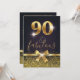 Elégante Invitation de 90e Anniversaire Noir et Or élégant. Caractéristiques design de parties scintillant or et or brillant arc sur l'avant ainsi que feuille d'or 90. Ajoutez les détails de la partie sur le dos.