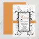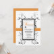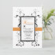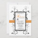 Carton d'invitation élégant pour une soirée de Halloween avec un encadrement noir orné et une bande centrale en forme de citrouille. Le mot « Halloween » est pré-imprimé et embelli avec une araignée.