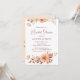 L'invitation présente un arrière - plan orange clair et chaleureux orné de bouquets de feuilles d'automne et de fleurs aux riches tons orange, marron, bordeaux et jaune. Le design élégant capte magnifiquement l'essence de la saison d'automne. Le texte modifiable vous permet de customiser chaque détail pour s'adapter parfaitement à votre événement. L'arrière est également orné de fleurs. Que vous planifiez une douche nuptiale ou une autre occasion spéciale comme un baby shower, cette invitation donne le ton parfait pour une célébration mémorable.