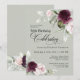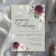 Célébrez un anniversaire marquant spécial avec cette magnifique invitation à la fête du 50e anniversaire féminine. Il présente d'élégantes bordures florales en roses bordeaux et roses de chaque côté du texte élégamment placé. Les couleurs comprennent le rose pâle, le rouge bordeaux profond et le prune mélangés à la verdure éthérée et de minuscules fleurs blanches d'accent sur un arrière - plan vert sage attrayant. Personnalisez le modèle de texte avec vos informations. Vous pouvez modifier l'âge à n'importe quel âge anniversaire.