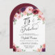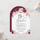 Elégante invitation de fête en arc de cercle 75ème qui présente "75 & Fabulous" dans un script élégant et bouquets aquarelles de fleurs rouges, roses et violettes bordeaux.