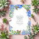 Invités Invitations à votre mariage avec cette invitation magnifiquement conçue avec une aquarelle vibrante de succulents et de fleurs douces dans les tons bleu, vert et rose. L'élégante typographie centrée sur la bordure fleurie apporte une touche de sophistication et de romantisme, ce qui le rend parfait pour les mariages de jardin, rustiques ou extérieurs. Idéal pour les couples qui souhaitent intégrer la beauté naturelle et un style artistique moderne dans leur papeterie mariage.