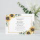 Faire-part de mariage de tournesol géométrique floral Eucalyptus. Créez une carte de Faire-part de mariage moderne Sunflower Floral Budget avec ce modèle mignon avec un beau bouquet fleuri rustique, cadre d'effet or géométrique, avec une typographie simple et moderne. CONSEIL : Des cartes de suite mariage comme RSVP, des programmes de mariage, des bannières, des tapisseries, des étiquettes cadeaux, des affiches, et d'autres cadeaux et cadeaux de mariage sont disponibles dans la collection ci-dessous avec ce design.
