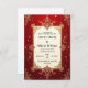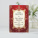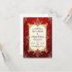 Un modèle d'invitation de mariage élégant et formel avec un fond rouge audacieux, orné de motifs filigranés dorés complexes et de motifs floraux subtils, présentant une section rectangulaire centrale blanche ou crème pour le texte, ornée d'une typographie ornée dans une police serif, telle que Bodoni ou Didot, avec les détails du mariage écrits dans un script élégant et cursif, entourés de bordures et de fioritures subtiles et ornées, avec une brillance ou une texture subtile pour donner à l'invitation une sensation de luxe et de premium, posé sur une teinte rouge profond et riche qui évoque la romance et la sophistication.