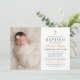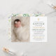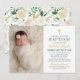 Invitation Élégante Baptême Photo Florale Vert Sauge Or