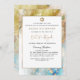 Faites plaisir à vos amis et à votre famille avec cette invitation de Bat Mitzvah élégante et magnifique ! Conception avec un fond céleste à l'aquarelle et à l'encre délicate dans des tons de bleu, d'aqua, d'or et d'argent avec des étoiles scintillantes et des paillettes dorées. Possibilité d'ajouter les détails de votre cérémonie et réception, déjeuner, dîner ou fête ! Idéal pour les thèmes célestes bleu et or ou gris argent, or et bleu. Étoile de David, phrase Bat Mitzvah et cadre en faux or. Détails de calligraphie manuscrite moderne. Beau dos avec fond d'aquarelle et d'encre céleste avec votre nom au centre.