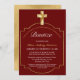 Invitation Elegante Bautismo de Niños Con Cruz Dorada Borgoña