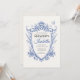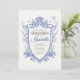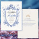 Invitez vos invités à une célébration inoubliable avec cette élégante invitation Quinceañera au blason floral bleu, conçue pour honorer un quinzième anniversaire spécial. Avec un blason floral gracieux dans des tons bleus doux et un accent de papillon délicat, cette invitation symbolise la transformation, la beauté et l'excitation du voyage vers la jeune âge adulte.