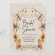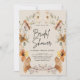 Invités Invitations pour célébrer la mariée d'être avec ces Boho Terracotta Floral Arch modernes et minimes. Le design simple comprend une "douche nuptiale" en écriture manuscrite décontractée, avec les détails de votre événement sous le lettrage moderne en noir cendré doux.