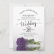 Cette belle faire-part de mariage présente un superbe design floral avec de la calligraphie en dentelle et un seul rose améthyste à long tige violet couleur mauve allongé sur son côté miroir dans un bassin d'eau. Le dos vous permet de lister les détails et les informations ainsi qu'un code QR personnalisable pour diriger vos invités vers votre site Web mariage pour des informations et/ou vers RSVP. L'invitation est conçue de façon à ce qu'elle fonctionne bien avec un standard ou une arche coupée. Élégante, élégante, chic et glamour, cette invitation fera une impression durable et est une merveilleuse façon d'invitation vos invités à partager votre joie dans votre journée spéciale.