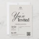 Cette invitation d'ouverture chic et simple beige est un modèle d'invitation facile à modifier qui vous permet d'ajouter votre logo d'entreprise et les détails de l'événement de lancement. Préparez-vous à votre fête de lancement en optant pour cette typographie de script minimale avec une sensation classique. Mettez à jour le code QR intégré pour donner des informations RSVP à vos participants. L'invitation de l'événement d'entreprise dispose d'un jeu de couleurs propre et classe de texte noir contre un arrière - plan beige clair avec le logo de l'entreprise et d'autres détails importants de l'événement. L'expression "You're Invited" figure en bonne place sur le devant du design avec une typographie chic et mixte.