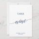 Cet élégant tableau de calligraphie marine numéro de table neuf est parfait pour un mariage simple. Le design neutre présente une carte minimaliste décorée de typographie romantique et fantaisiste. La carte s'imprime à l'avant et à l'arrière (double face). Les autres numéros de tableau de la collection sont vendus séparément.