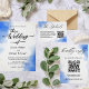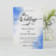 Invitations invités à votre journée spéciale avec cette faire-part de mariage moderne avec des accents d'aquarelle bleu onirique, des taches d'or et une calligraphie élégante. Le design minimaliste allie style contemporain et esprit artistique, ce qui en fait un lieu idéal pour les mariages chic, modernes ou formels. Customisez facilement avec vos noms, date du mariage, heure, emplacement et détails RSVP. Idéal pour les couples qui planifient une fête unique et élégante.
