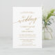 Cette élégante calligraphie dorée du mariage avec carte d'invitation RSVP est parfaite pour un mariage de automne. Le design neutre présente une carte minimaliste décorée avec une typographie romantique et fantaisiste de feuille d'or. Incluez facilement vos informations RSVP sur l'invitation. Remarque : Ce design ne comporte pas de véritable feuille d'or. C'est un graphisme de haute qualité fait pour ressembler à du papier doré.