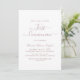 Cette élégante calligraphie or rose première invitation à la communion est parfaite pour une célébration simple mais significative. Le design rose vif présente un style minimaliste, orné d'une typographie romantique et fantaisiste de feuille d'or rose. Avec son élégance subtile, cette invitation crée une belle première impression pour votre occasion spéciale. Entièrement personnalisable pour refléter votre style unique.