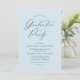 Simples invitations à la fête de remise de diplômes avec "Graduation Party" dans un élégant script de marine avec un arrière - plan bleu clair. Personnalisez les invitations modernes de la fête de remise de diplômes avec le nom du diplômé, l'école, l'année de remise de diplômes et les détails de la fête ci-dessous. L'arrière des invitations minimalistes du grand parti offre de l'espace pour des textes et des photos supplémentaires. Les invitations sont parfaits pour les diplômés du secondaire et du collège.