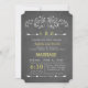 Design de mariage rustique mais élégant avec illustration décorative tourbillon et fleurie, deux flèches avec coeur, sur un arrière - plan en tableau noir. Utilisez l'outil Personnaliser pour ajouter vos informations. Pour en savoir plus, visitez ma collection de Mariages Chalkboard Flourish et Swirl.