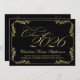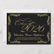 Faire-part personnalisé simple et classique, avec un cadre en noir massif arrière - plan et feuille feuillu, dans un look métallique d'or. Élégant Invitation de la classe noire/or est Stately et Posh.