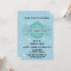 Célébrez la saison des Fêtes avec cette élégante tourbillonnant fantaisie verte boule de Noël / bauble ornament bleu compagnie annuelle de fête de Noël. Les détails de la fête sont écrits dans une élégante typographie en noir gras à l'intérieur de la scène festive de Noël. L'arrière - plan de couleur bleu clair est décoré de taches de flocons blancs tombants. Cette invitation chic est parfaite pour des fêtes de vacances, de Noël ou d'hiver !
