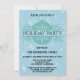 Célébrez la saison des Fêtes avec cette élégante tourbillonnant fantaisie verte boule de Noël / bauble ornament bleu compagnie annuel fête des Fêtes. Les détails de la fête sont écrits dans une élégante typographie en noir gras à l'intérieur de la scène festive de Noël. L'arrière - plan de couleur bleu clair est décoré de taches de flocons blancs tombants. Cette invitation chic est parfaite pour des fêtes de vacances, de Noël ou d'hiver !