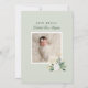Cette élégante cérémonie de baptême et l'invitation à la fête du déjeuner pour une petite fille présente un élégant libellé personnalisé pour votre événement spécial accentué par une croix d'or et encadré par une belle couronne fleurie de jardin blanc neutre, rose rousse, et couleur crème fleurs roses avec vert et or vert. Un arrière - plan vert doux avec espace photo nouveau-né apparaît à l'arrière de la carte. Personnalisez le texte "Dieu béni" avec le nom du bébé dans le script.