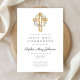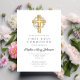 Invitation Élégante couronne florale Croix première communion