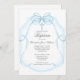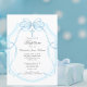 Un joli ruban bleu et un arc entourent votre élégante invitation au baptême pour votre petit garçon. Une belle croix chrétienne est au-dessus des détails invitations pour votre célébration de confirmation ou baptême. Belles invitations religieuses pour votre cérémonie catholique.