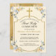 Invitation Elégante Croix d'or Florale 1ère Sainte Communion