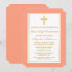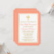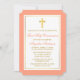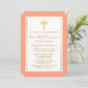 Invitation Elégante Croix d'or Peach Première communion