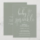 Cette invitation élégante de baby sprinkle de couleur vert sauge avec écriture élégante et neutre peut être personnalisée avec toutes les informations de votre célébration spéciale et les détails du code QR du registre au verso. Conçue par Thisisnotme©