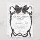 Faites une déclaration stylée avec cette invitation de fête de fin d'études "esthétique Coquette". Avec un magnifique nœud aquarelle noir surdimensionné et des rubans fluides qui encadrent élégamment les détails de votre événement. Ce design monochrome chic avec une typographie script sophistiquée est parfait pour les diplômés du lycée ou de l'université. Personnalisez facilement pour une célébration intemporelle et tendance de la promotion 2026.