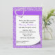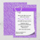 Invitation assez nuptiale de douche, avec un bel arrière - plan pourpre de conception. Un secteur blanc des textes avec un amusement regardant la boucle, dans le coin inférieur droit, est décoré, en haut, d'un ruban et d'une fausse pierre pourpres semblant le coeur argenté. Le texte dans gris et le pourpre est entièrement personnalisable pour adapter à vos besoins. Belle invitation que la jeune mariée à être aimera.