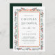 Cette invitation élégante de fête prénatale pour couples présente un cadre aquarelle de winterberry de Noël accentué d'un ruban rouge charmant.