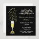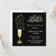 Invitation élégante personnalisée pour une fête d'anniversaire de mariage, réalisée en noir et or. Graphiques d'un verre festif de champagne décoré d'un ruban de ton or, sur la tige, et des étincelles sortant du haut, se trouve sur le côté gauche de l'invitation. Un fond noir uni, avec du texte blanc et or entièrement personnalisable pour répondre à vos besoins de fête. Idéal également pour les fêtes d'anniversaire.
