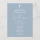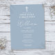 Cette carte d'invitation de première communion en bleu poussiéreux élégante peut être personnalisée avec vos informations dans une typographie chic. Conçue par Thisisnotme©