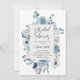 Elégante invitation à la douche nuptiale à fleurs bleues poussiéreuses.