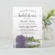 Cette belle invitation à la douche nuptiale comprend une photo d'un seul rose à long tige de couleur violet, lavande ou lilas couché sur son côté réfléchissant dans un bassin d'eau avec vagues et ondulations. L'élégant titre de calligraphie script prête classe et style. Inclut des informations sur le registre des douches et des cadeaux. Une façon parfaite de célébrer la mariée à être.