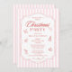 Elégant Fête de Noël Entreprise Fête Invitations de fête de Noël avec des éléments de Noël rouge blanc et blanc sur un arrière - plan rayé rose et blanc avec le texte "Fête de Noël" dans élégant script de calligraphie rouge typographie. Elégant, tendance et chic pour votre fête de vacances d'entreprise. Créé par Evco Studio www.zazzle.com/store/evcostudio