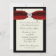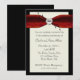 Invitation élégante pour un anniversaire de mariage réalisée en crème, rouge et noir. Un fond en couches de crème et de noir, avec des graphiques d'un ruban de satin rouge damassé élégant en haut. Un diamant en forme de cœur est posé sur le ruban, avec des fioritures noires derrière le diamant. Personnalisez tout le texte pour répondre aux besoins de votre fête. Une invitation très élégante et formelle.