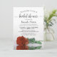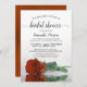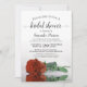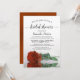 Cette belle invitation de fête de mariage présente une photo d'une seule rose orange rouille à longue tige allongée sur le côté se reflétant dans une mare d'eau avec des vagues et des ondulations. Le titre de calligraphie élégante apporte de la classe et du style. Comprend des informations sur la fête et le registre de cadeaux. Un moyen parfait de célébrer la future mariée.