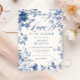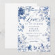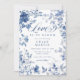 Donnez à votre fête de mariage une élégance intemporelle et une touche de charme classique avec cette invitation de mariage élégante à motif toile bleue et chinoiserie. Avec des motifs complexes de toile bleue et des florales délicates, ce design rassemble la beauté de la chinoiserie traditionnelle avec une touche romantique et contemporaine. Le thème "L'amour est en fleur", écrit de manière élégante avec une typographie sophistiquée, capture parfaitement l'essence de l'amour et de la beauté florissante de la nature.