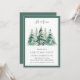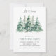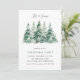 Elégante invitation à la fête de Noël familiale. Le design comprend des pins enneigés aquarelles. Modifiez facilement les informations pour créer une invitation unique de fête de vacances!